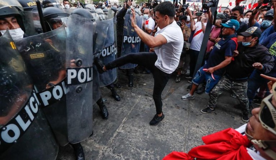 Aunque el Ejecutivo lo negó, imágenes publicadas por varios medios peruanos mostraron a los efectivos de la Policía Nacional disparando con material antidisturbios directamente al cuerpo de los manifestantes.