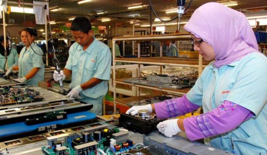Trabajadores y trabajadoras en la fábrica de productos electrónicos de Cikarang, Indonesia. En todas las regiones del mundo persiste una brecha que desfavorece el acceso al empleo de las mujeres, en un contexto global de más de 400 millones de personas que quieren trabajar y no consiguen empleo. Imagen: Asrian Mirza / OIT