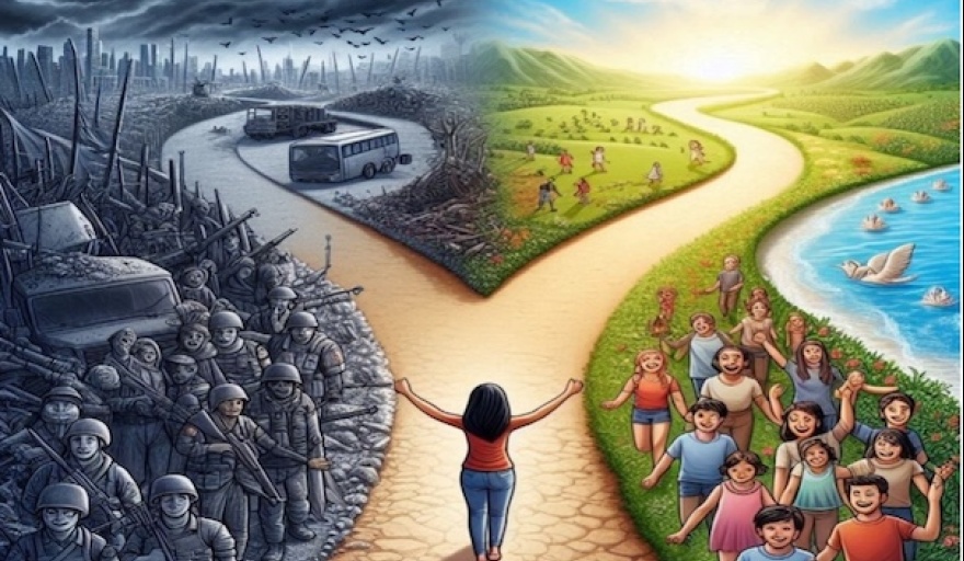 A veces mantenemos intercambios entre dos personas del grupo para compartir nuestras preocupaciones sobre el rumbo que podría tomar el mundo si no se produce un «despertar de la conciencia» por parte de las poblaciones de los países que quieren impulsar sus economías produciendo más armas. Resumimos el contenido del intercambio y lo enviamos a muchas personas.