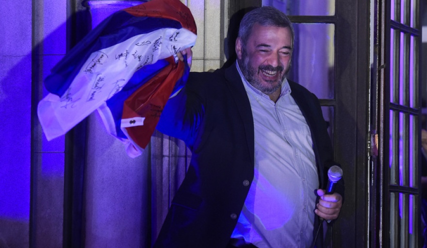 Pocas horas después de cerrados las mesas de votación y mientras la Corte Electoral trabajaba en el escrutinio que dará a conocer los resultados finales, Bergara salió al balcón de la sede de su fuerza política para celebrar y hablar con los simpatizantes que llegaron hasta allí para brindarle su apoyo.