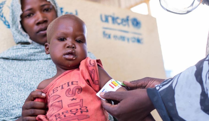 Familias reciben servicios de salud y nutrición en una clínica apoyada por UNICEF en un campo de desplazados en Zalingi, Darfur Central.