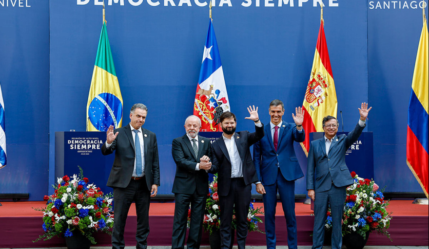 El encuentro de alto nivel que tuvo lugar en Santiago de Chile entre los presidentes Gabriel Boric, Luiz Inácio Lula da Silva, Pedro Sánchez, Gustavo Petro y Yamandú Orsi marcó un hito: en el contexto de una intensa agenda pública en Santiago, se debatieron los principales desafíos de las democracias regionales y los mandatarios de Chile, Brasil, España, Colombia y Uruguay consolidaron su compromiso de trabajo conjunto, con una alianza estratégica en la defensa del multilateralismo, la integración regional, la defensa de los derechos humanos y la lucha por la igualdad y la justicia social.