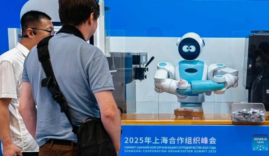 Robot preparando helados para los periodistas en el centro de medios de la Cumbre 2025 de la Organización de Cooperación de Shanghai (OCS), en Tianjin, en el norte de China. (Imagen de Xinhua)