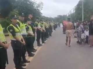 “Nuestros derechos no se cierran; nuestra dignidad no se traslada ni se archiva”, dice uno de los pasacalles que utilizan los manifestantes, con la firma de la Articulación Nacional Indígena por una Vida Digna (Anivid).