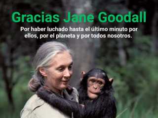 «El mundo ha perdido a una gran defensora de la vida y de la justicia. Los grandes simios han quedado hoy huérfanos de una voz poderosa que luchó sin descanso por su libertad y por la protección de sus bosques. Jane Goodall nos mostró que los chimpancés sienten, piensan, se comunican y transmiten su cultura de generación en generación. Gracias a ella, entendimos que no estamos solos en la evolución y que tenemos una responsabilidad histórica con quienes comparten nuestro linaje.»
