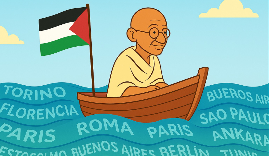 No sé si estaba planificado o si fue solo una tremenda coincidencia histórica el hecho de que los barcos de la Global Sumud Flotilla hayan sido interceptados por las Fuerzas de Ocupación Israelí – IOF , entre la noche del 1 y la madrugada de este 2 de octubre. Sea una cosa u otra el hecho brilla como un sol para llamarnos la atención sobre la efeméride. Y lo primero que me viene es hacer un emocionado saludo : ¡Cumpleaños feliz, Gandhi!