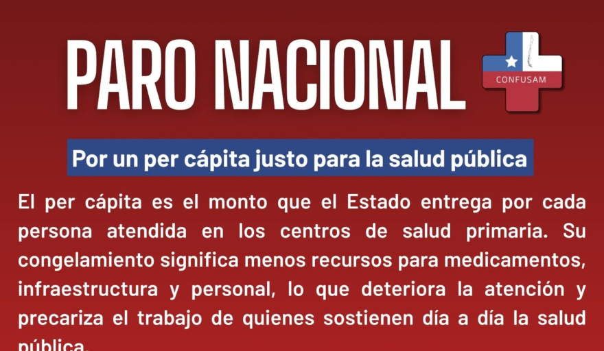 Como organización que defiende los derechos humanos, económicos, sociales y ambientales de nuestros pueblos, hoy bajo una profunda regresión, expresamos un decidido apoyo al paro del 28 al 30 de octubre convocado por las y los trabajadores de la salud Municipal (CONFUSAM), en defensa de la salud pública.