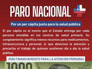 Si el presupuesto entregado por el Ministro de Hacienda se mantiene, la salud municipal entrará en una crisis aún más profunda que la observada por los pacientes en general, respecto al requerimiento de insumos, el mantenimiento de la infraestructura y del personal de salud. Por todo ello, como Chile Mejor sin TLC demandamos al parlamento y a los alcaldes, exigir que se entregue al menos un aumento de $1.000 al per cápita actual.