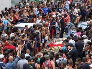 Decenas de cadáveres son llevados por los residentes a la plaza São Lucas, en Penha, al norte de Río de Janeiro, Brasil.
