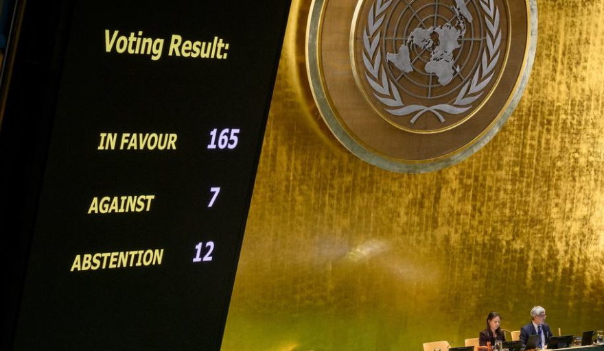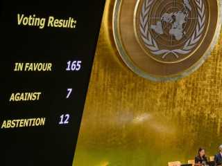La resolución de este año obtuvo 165 votos a favor, 7 en contra (Argentina, Estados Unidos, Hungría, Israel, Macedonia del Norte, Paraguay y Ucrania) y 12 abstenciones (Albania, Bosnia y Herzegovina, Costa Rica, Chequia, Ecuador, Estonia, Letonia, Lituania, Marruecos, Moldavia, Rumanía y Polonia).
