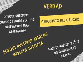 Generaciones enteras masacradas, migración forzada por la violencia del extractivismo del caucho, despojo del territorio, es lo que este grupo de jóvenes indígenas, agrupados en el colectivo TSUNI, quieren visibilizar y exigir que no se siga repitiendo.