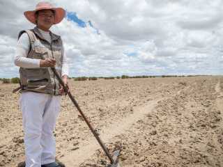 Una mujer en Bolivia prepara su tierra para cultivar.