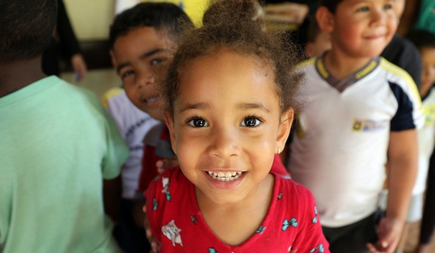OPS. Niños haciendo fila para ser vacunados en Brasil.