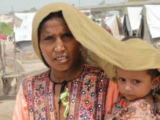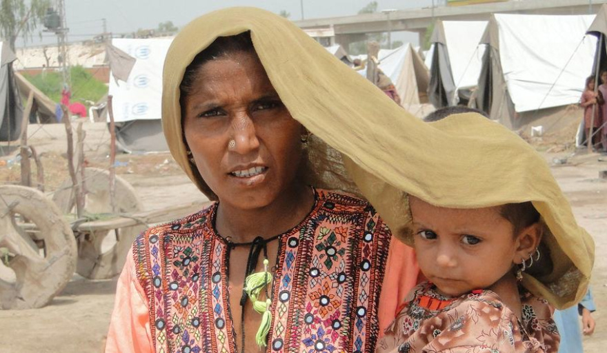 Una mujer cubre a su hija para protegerla del calor extremo en Sindh, Pakistán. Foto: PNUD/Hira Hashmey