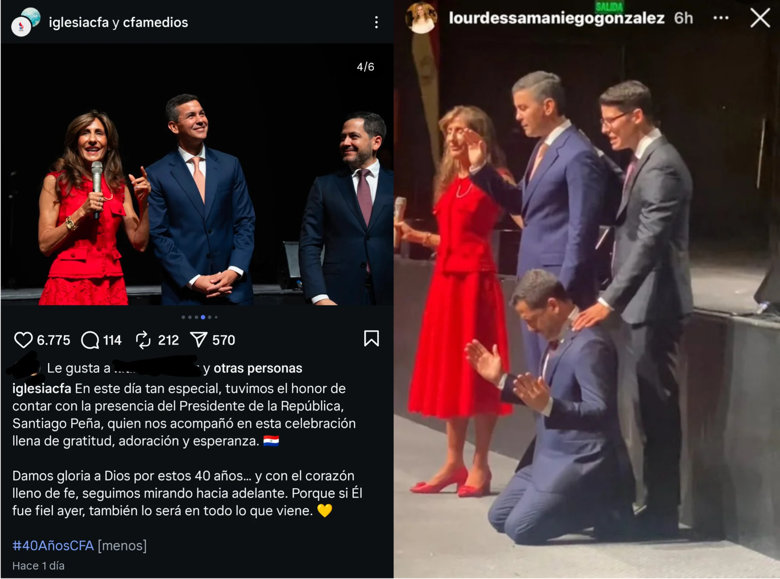 Decía al principio que hasta ahora las organizaciones evangélicas se habían limitado a ganar influencia en los organismos del Estado, sobre todo relacionándose con y captando a las personas que dirigen esos organismos. Cualquiera que asista a un servicio religioso de alguna de esas 254 denominaciones, pero en especial de las más “prestigiosas”, como el Centro Familiar de Adoración, podrá comprobar que muchos de los frecuentadores son políticos colorados, algunos de ellos pastores. Como muestra un botón, mejor dicho, un par de fotos.