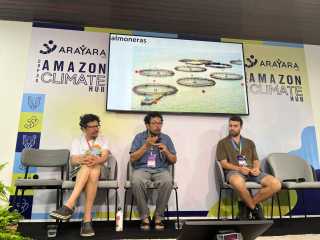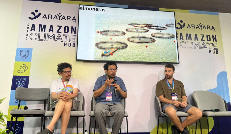 También se refirió a la industria del salmón. “Queremos exponer acá otro tema, al ser Brasil uno de los más importantes importadores de salmón chileno. El salmón lo plantean como solución de adaptación a la crisis climática que acidifica los océanos, haciendo perder biodiversidad y pesquerías asociadas. Dicen, nosotros con esta industria vamos a ser el principal proveedor de proteínas saludables en el mundo. En el fondo, adaptación”, detalló.