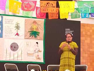 Como un marco de contraste, el panel sobre Nuevas Tecnologías en torno a la apropiación de los recursos genéticos, abrió con el trabajo Bordados de Raíz Aérea del centro Ecológico Milpa Urbana de Oaxaca, un colectivo de bordadoras que con sus manos y colores llevan a la tela la historia de sus cuerpos territorios, asociada a la Milpa. Se trata de una práctica de cultivo tradicional de México, diverso e integrado de maíz/calabaza y porotos, del que también habló un Poeta y Cuenta Cuentos, Martín Corona, que encantó a niñas y niños con el cuento del Romance del Maíz y la Semilla (ver registro AQUÍ). Las intervenciones fueron de Verónica Villa del Grupo ETC México, Mateja Lara del Navdanja, India, y Jaime Morales, de la Red de Alternativas Sustentables Agropecuarias de Jalisco, junto a Carlos Ávila de la Universidad Veracruzana.