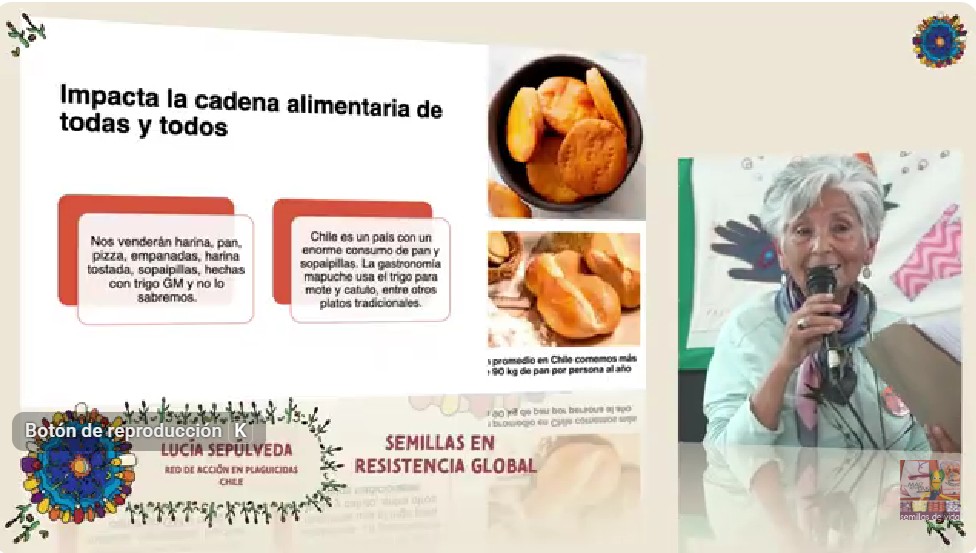 La intervención del ADN de la semilla, señalaban, tiene como objetivo agregarle algún rasgo o quitarle otro, en un proceso express del cual se obtienen semillas que luego se patentan sin evaluar sus impactos en los ecosistemas. Se fortalece así el control del mercado de la semillas por las transnacionales, con la complicidad de muchos gobiernos. La técnica CrispRR/Cas9, de edición genética y de frecuente uso, fue una de las nuevas tecnologías mencionadas. Lucía Sepúlveda, de la Red de Acción en Plaguicidas RAP-Chile y coordinadora de Chile Mejor sin TLC, expuso en el evento el caso del trigo editado genéticamente con esa técnica, de reciente aprobación en Chile. En su intervención destacó la necesidad de asegurar un mercado para los productores de trigo antiguo y de alforfón (trigo sarraceno) a partir de las economías populares, a fin de contar con una alternativa ante este trigo manipulado genéticamente, innecesario y riesgoso para los ecosistemas. También destacó la recuperación de semillas antiguas llevada adelante en forma autónoma por el colectivo Biodiversidad Alimentaria junto a comunidades campesinas e indígenas (ver registro de esa intervención a partir del minuto 33 AQUÍ). La representante chilena compartió el panel de cierre del evento con Karen Hansen, del Institute for Agriculture and Trade Policies IATP (Estados Unidos) y Enzo Orrt de la Red de Agricultores Orgánicos de Misiones, Argentina, el domingo 23.