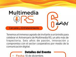 El evento está previsto para el 10 de diciembre, a partir de las 18.00 h en la Sede Social de la Coop. Sagrados (Avda. Overava N°358 c/ Santísima Trinidad) En estos seis años, Multimedia RS se ha consolidado como un portal de comunicación integral que va más allá de radio y TV online.