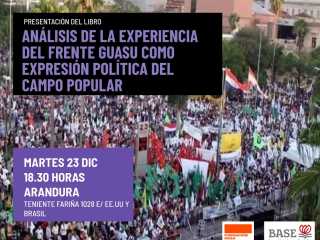 El martes 23 de diciembre, a las 18:30 horas, se realizará la presentación del libro “Análisis de la experiencia del Frente Guasu como expresión política del campo popular”, una investigación desarrollada por BASE-IS con el apoyo de la Fundación Rosa Luxemburgo. El encuentro tendrá lugar en la librería Arandurã (Tte Fariña e/ EEUU y Brasil) y será de acceso libre y gratuito.