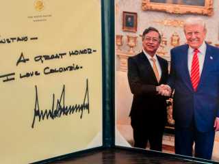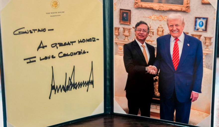 Aunque el protocolo fue sobrio y el presidente colombiano no fue recibido con honores militares ni por Trump en la entrada del Ala Oeste —como sí ocurrió con otros líderes regionales—, el clima interno del encuentro fue descrito como cordial. Como gesto simbólico, Trump entregó a Petro una fotografía de ambos estrechándose la mano, acompañada de un mensaje escrito a mano: “Gustavo: Un gran honor. Amor a Colombia”.