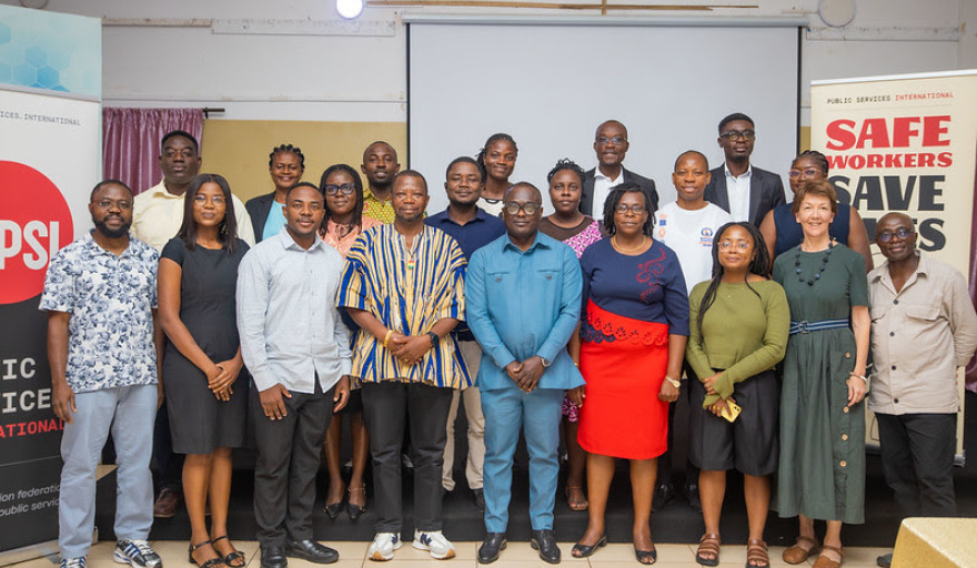La resiliencia climática y la seguridad frente a los impactos de la crisis ambiental comenzaron a ocupar un lugar central en la agenda de los principales sindicatos del sector salud en Ghana. A partir del proyecto “Supporting Health and Care Workers for Climate Resilience in Ghana”, impulsado por Public Services International (PSI) junto con la Health Services Workers’ Union (HSWU) y la Ghana Registered Nurses and Midwives Association (GRNMA), se puso en marcha una Colaborativa de Aprendizaje que articula a dirigentes sindicales y trabajadores de primera línea.