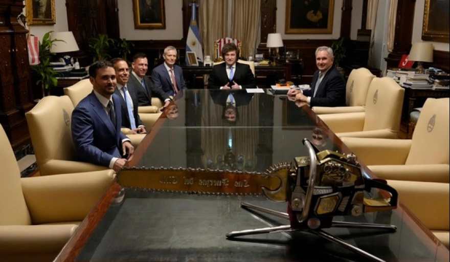 La primera visita de Thiel a la Argentina había ocurrido en mayo de 2024. El nexo fue Alec Oxenford —hoy embajador argentino en Washington— y el encuentro con Milei dejó en el empresario una impresión que él mismo describió como entusiasmo genuino. En octubre de ese año, en un foro del Club Económico de Miami, Thiel formuló una pregunta retórica que era, en realidad, una declaración de intenciones: «¿Por qué nos interesa tanto lo que pasa en Argentina? La respuesta es que sentimos que Argentina podría ser el futuro de Europa y de Estados Unidos». Hay que detenerse en esa frase. No dice que Argentina es un buen mercado, ni que tiene potencial de crecimiento. Dice que Argentina podría ser el futuro. El laboratorio. El ensayo general.