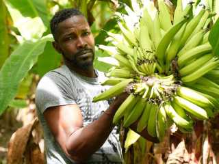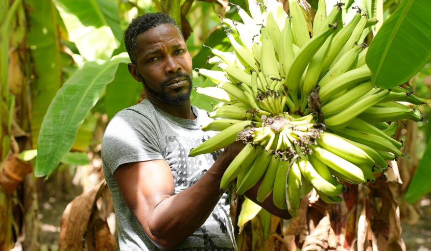 Pedro Rodrigues Pequeño agricultor de Gonaives, Haití, en su campo de plátanos.
